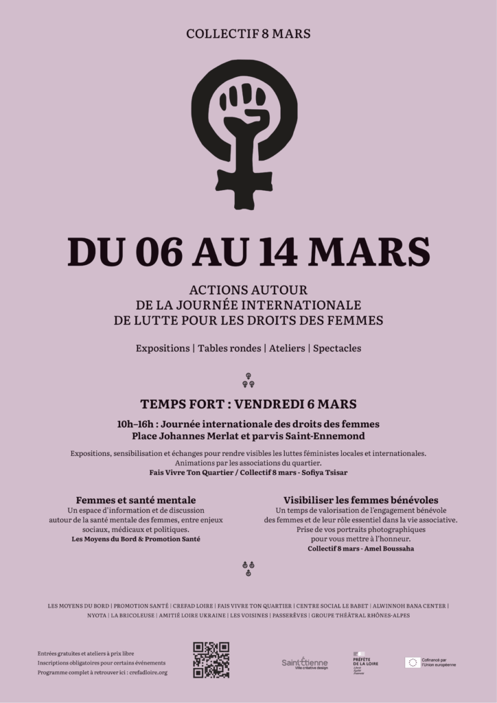 Cette année encore, le collectif 8 mars vous propose une programmation autour de la journée internationale de lutte pour les droits des femmes.